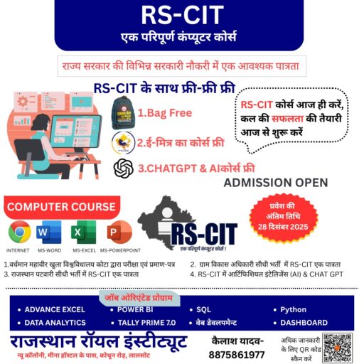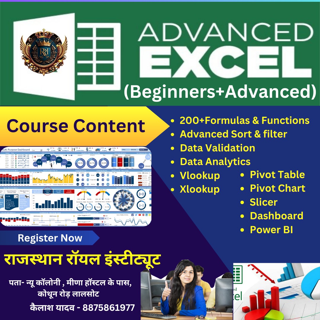 मैं कैलाश यादव, Rajasthan Royal Institute का संस्थापक एवं प्रमुख प्रशिक्षक हूँ। मेरा विज़न है—हर विद्यार्थी को ऐसे डिजिटल और प्रोफेशनल कौशल सिखाना, जिनकी आज के दौर में सबसे ज़्यादा आवश्यकता है। मैं पिछले कई वर्षों से छात्रों को RSCIT, Tally Prime, Accounts, Advance Excel, Power BI और Data Analytics जैसे करियर-ओरिएंटेड कोर्सेज में विशेषज्ञ प्रशिक्षण प्रदान कर रहा हूँ।